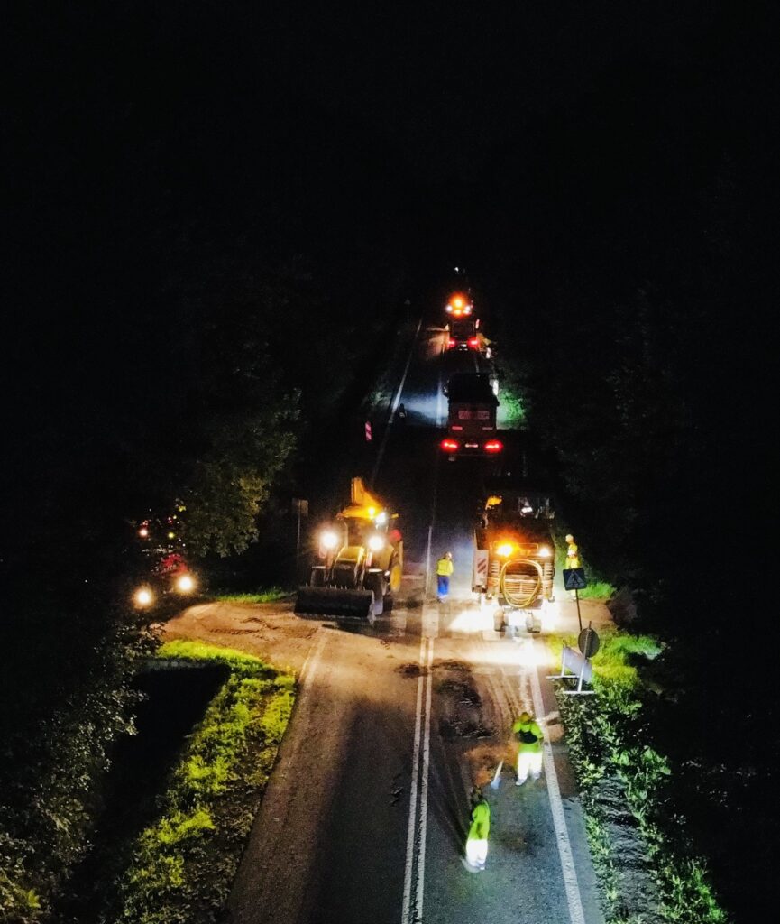 Aby zminimalizować utrudnienia w ruchu, ekipa PRUiM pracowała nocą. Punktualnie o północy ruszyło frezowanie starej nawierzchni, a już o świcie rozpoczęło się układanie nowej warstwy bitumicznej.