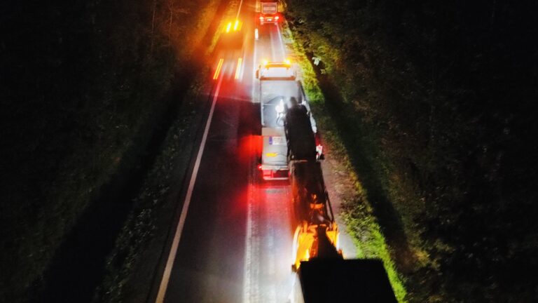 Ten ciemny pas na jezdni oznacza, że właśnie położyliśmy masę bitumiczną na kolejnym fragmencie 900…