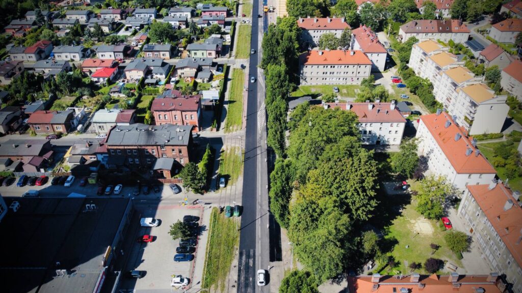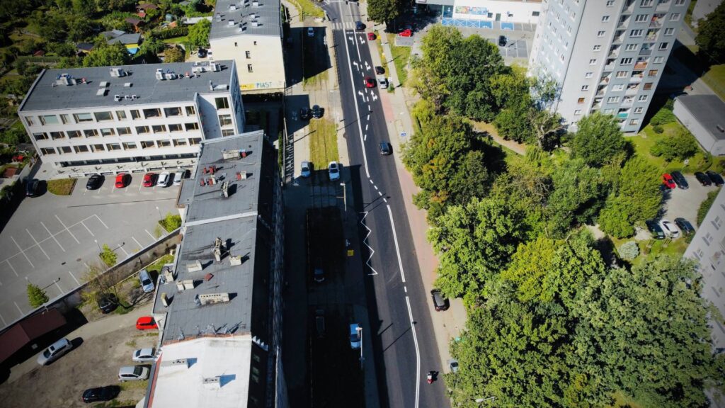 Pierwszy fragment remontowanej ulicy Chorzowska już z nową nawierzchnią jezdni. Nakładka asfaltowa została ułożona na ponad kilometrowym odcinku. To koniec pierwszego etapu prac prowadzonych na tej ulicy.