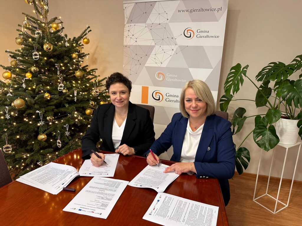 Dzisiaj w Urzędzie Gminy Gierałtowice, Izabela Buchała Wójt Gminy Gierałtowice oraz Izabela Nowak, Prezes PRUiM S.A podpisały umowę na realizację zadania pn. „Budowa drogi dla pieszych i rowerów wraz z oświetleniem przy ul. Granicznej w Przyszowicach”.