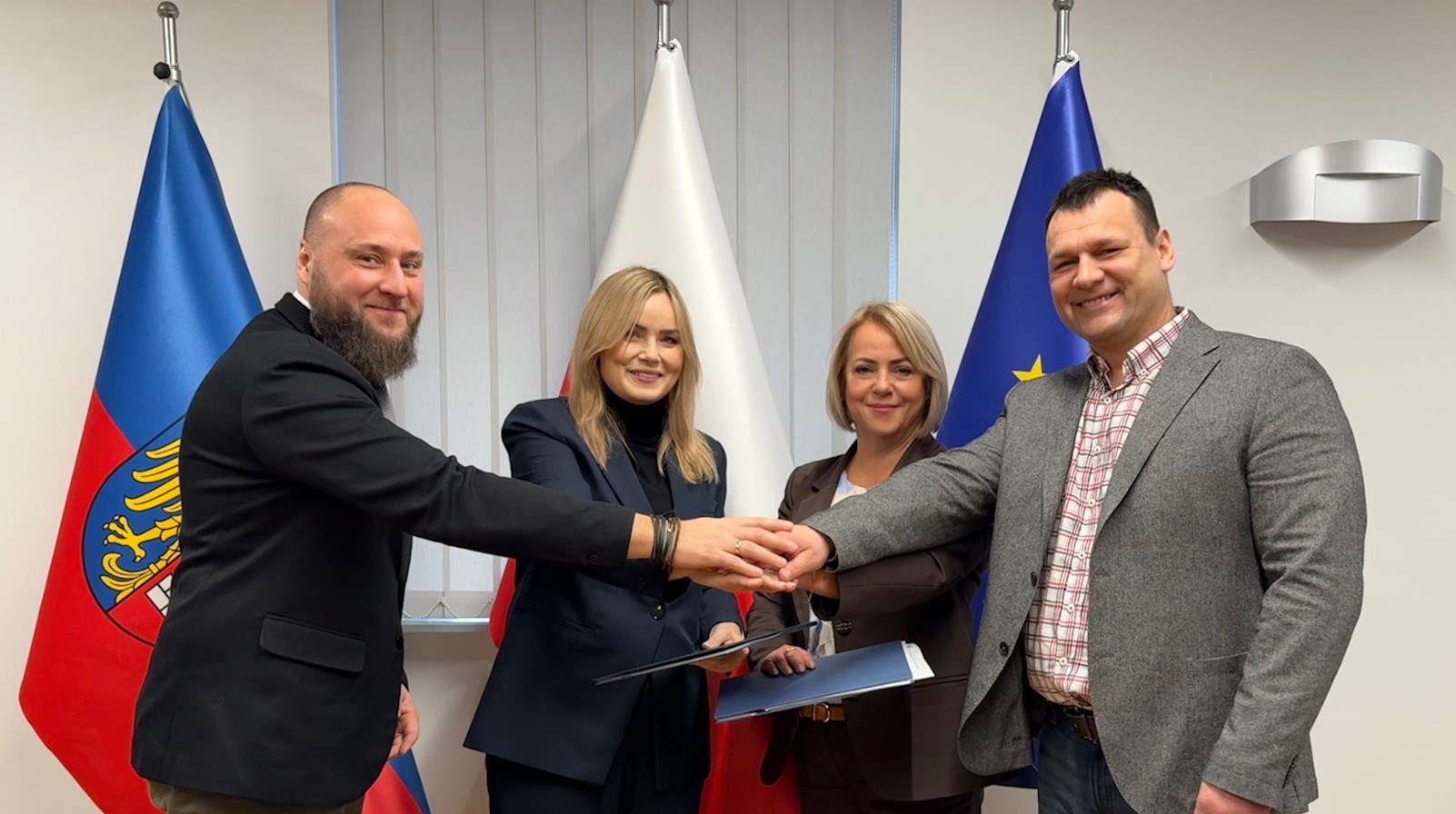 Na zdjęciu: Dawid Ochód, dyrektor ZDM Gliwice, Katarzyna Kuczyńska – Budka, prezydent Gliwic, Izabela Nowak, prezes PRUiM S.A i Karol Jasiński, członek zarządu TURRIM Inżynieria Industrialna sp. z o.o.
